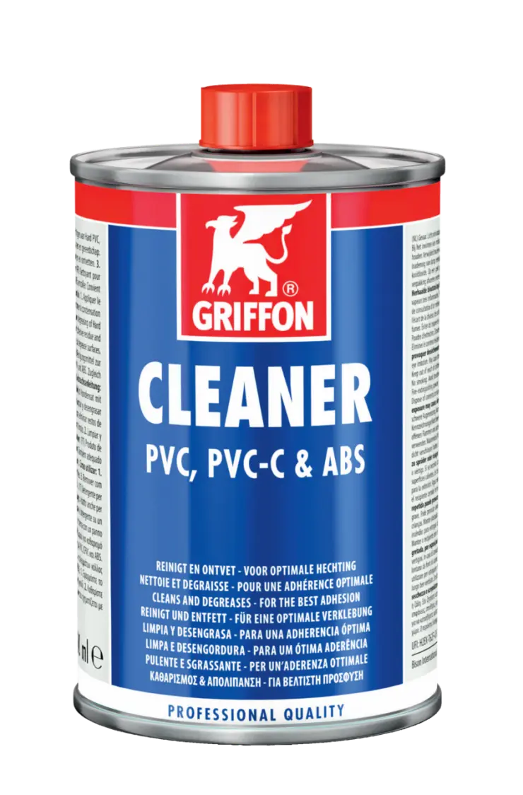 For cleaning and degreasing pipes, sockets and fittings of (rigid) PVC, PVC-C and ABS. Also suitable for removing uncured adhesive residue and for cleaning brushes and tools. Use in combination with Griffon Cleaner Cloth.