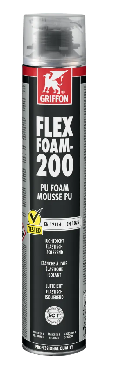 Load the canister onto a GRIFFON PU Foam Gun. Keep the canister upside down when using. Do not fill spaces more than half full. Fill large spaces with the foam layer by layer. Moistening the foam will result in faster curing times. Tack-free after approximately 8 minutes and cuttable after approximately 30 minutes. Total curing period approximately 1.5 hours, depending on thickness and ambient conditions. Can be cut, sawn, sanded and painted after curing.