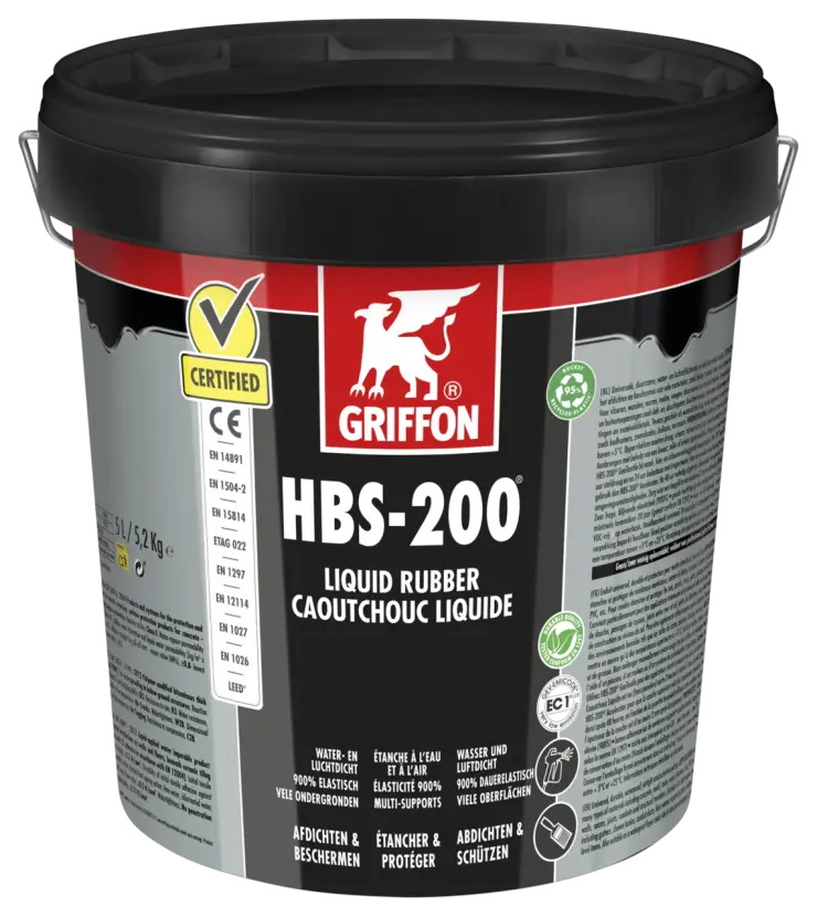 Voor gebruik handmatig roeren tot er een homogene kleur ontstaat. Roeren met een elektrische mixer met een hoog toerental wordt afgeraden. Breng op in meerdere lagen. Bij voorkeur de laag laten drogen alvorens de volgende laag aan te brengen. Droogtijd is afhankelijk van de relatieve luchtvochtigheid, temperatuur en ondergrond. Bij naad-, kier- en scheuroverbruggende toepassingen GRIFFON HBS-200® GeoTextile gebruiken. GRIFFON HBS-200® GeoTextile dient te worden aangebracht in nog natte HBS-200® Liquid Rubber. Vervolgens direct afstrijken met tweede laag HBS-200® Liquid Rubber. Zorg altijd voor een laagdikte van minimaal 2 mm na uitharding.