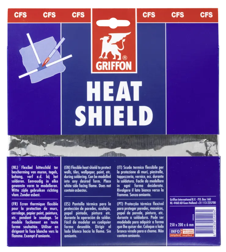 Heatshield positioneren tussen het te solderen oppervlak en het te beschermen oppervlak. Witte zijde gebruiken richting vlam. Vermijd langdurige plaatselijke verhitting op de Heatshield.