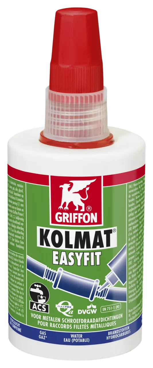1. Oppervlakken reinigen m.b.v. een ontvetter (Griffon Primor) en een schone, goed absorberende, pluisvrije doek (Griffon Cleaner Cloth). 2. Gelijkmatig aanbrengen op de eerste 4 schroefdraden van het mannelijke deel en de eerste schroefdraad van het vrouwelijke deel. 3. Verbinding direct monteren en resten verwijderen. Uitharding (>20°C): functioneelvast 3 - 6 uur, volledig 12 - 24 uur (RVS 72 uur). Na uitharding zwaar demonteerbaar.