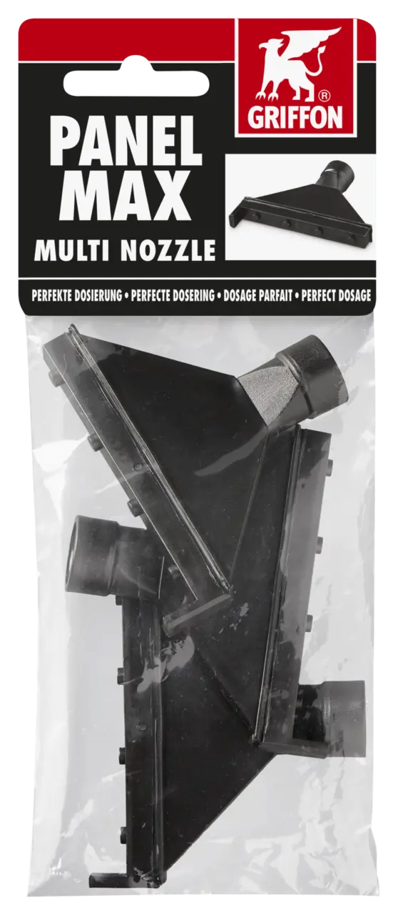Nozzle voor het aanbrengen van tot vier dunne, parallelle rillen op een groot aantal materialen. Ideaal voor grotere oppervlakken en voor toepassingen waarbij lijm of kit langs langere randen moet worden aangebracht, bijv. bij het lijmen van panelen, plinten of afwerklijsten.