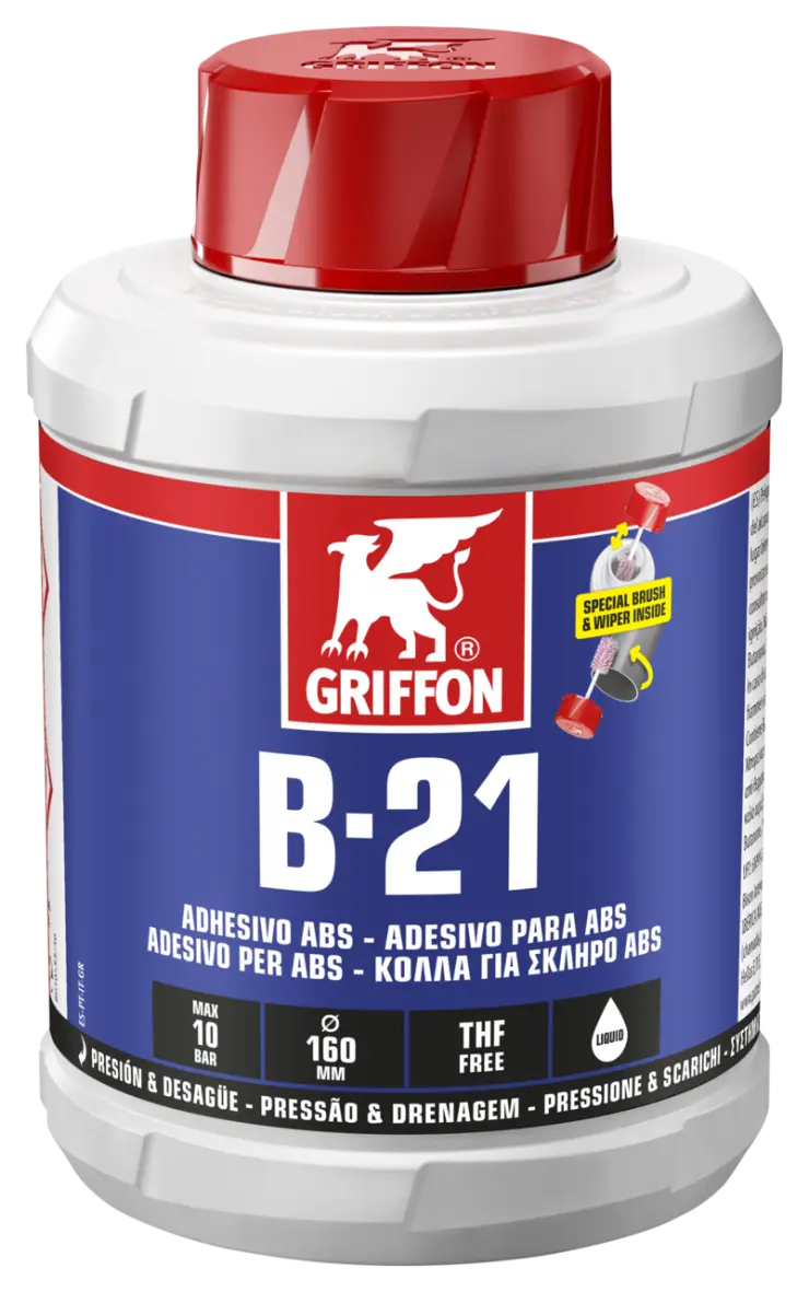 1. Corte o tubo, chanfre e alise. 2. Limpe as superfícies a colar com Griffon PVC/ABS Cleaner e um pano de limpeza. 3. Aplicar a cola de forma rápida e uniforme a toda a volta (4-6x) em ambas as superfícies (abundantemente no tubo e finamente na manga). 4. Junte as peças imediatamente. Remova o excesso de cola. Não manusear a união da tubagem durante os primeiros 10 minutos. Feche bem o recipiente imediatamente após a sua utilização.