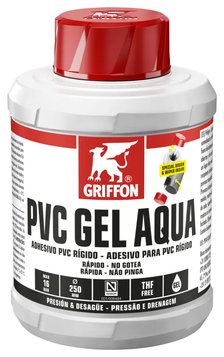 1. Corte os tubos, chanfre e alise. 2. Limpe as superfícies a colar com Griffon PVC Cleaner e um pano de limpeza. 3. Aplicar a cola de forma rápida e uniforme a toda à volta (4-6x) nas duas superfícies a colar (abundantemente no tubo e finamente na união). 4. Junte as peças imediatamente. Remova o excesso de cola. Não manusear a união da tubagem durante os primeiros 10 minutos. Feche bem o recipiente imediatamente após a sua utilização.