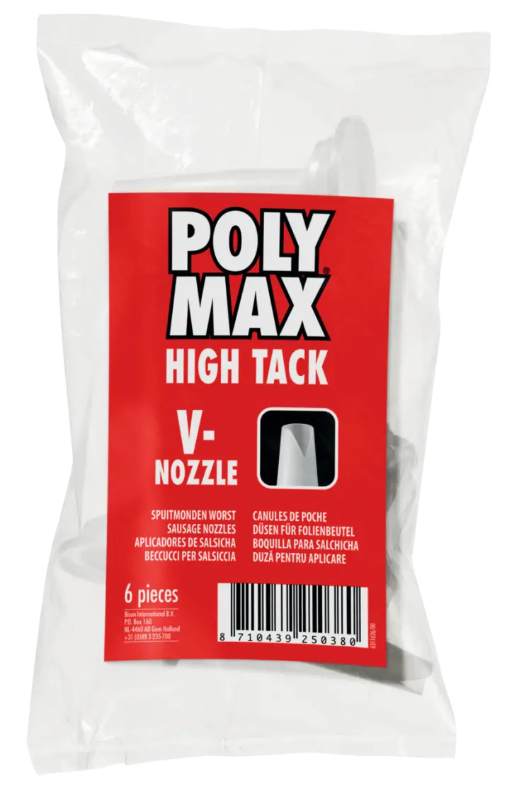 Ponteira aplicadora com abertura específica em forma de V para a aplicação de Poly Max® High Tack Express em cartucho salsichas. Utilizar em combinação com a Poly Max® Pistola para salsicha.